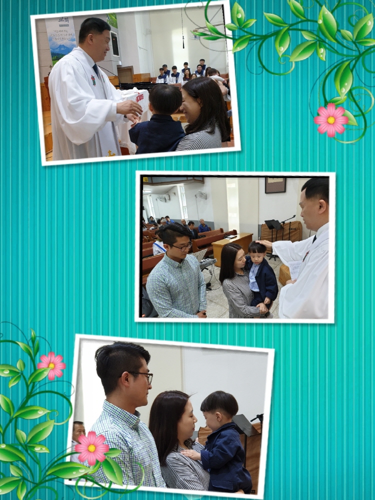 주일이며 어린이날에 유아세례를 받았네요.